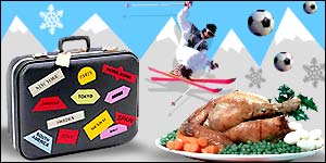 Coaches will no doubt be telling their superstars to maintain fitness levels and take it easy, but we're talking professional footballers here - can you really see them nursing half a light and bitter on New Year's Eve? Some will, no doubt, use the break to spend time with their kids and enjoy a proper family Christmas. The foreign contingent will jet back home and allow themselves a glass of red wine with their turkey pasta. And Owen will be putting out his mince pies and sherry, knowing that he won't be able to get to sleep until at least 11 O'Clock for all the excitement. Piste But what about the rest? Lee Bowyer and Jody Morris building a school in Burkina Faso? Kieron Dyer spending two weeks in a monastery? Don't think so. You're more likely to encounter England's finest having it large it in La Manga, getting frisky in Faliraki or losing the plot in Bangkok. Then there's the winter sports option - on the piste if you prefer. Players are expressly forbidden to go skiing or snowboarding, but footballers are like children - the more you tell them not to do something, the more determined they are to do it. Let's face it, they're more likely to shatter a limb in an apr�s ski showdown than they are on the slippery slopes.