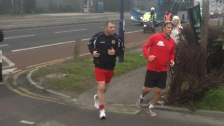 John ran from Faversham to Gravesend yesterday, but he wasn't alone - his wife Mel, Frank Skinner, Chris Moyles and a host of supporters ran with John during his second marathon.