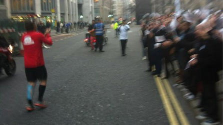 @sportrelief, 2 March: Big welcome from BT staff at St Paul's. 3.5 miles to go #BishopsHell