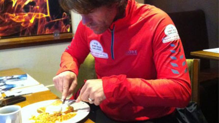 @sportrelief, 2 March: Poached eggs on toast going down a treat. It's the most he's eaten in two days. #BishopsHell