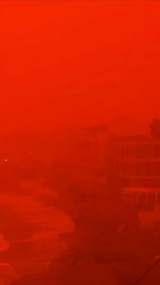 సహారా ఎడారి నుంచి ఇసుక, ధూళికళాల ప్రభావంతో ఆకాశం ఎర్రగా అయింది. ఓ తుఫాన్ సమయంలో ఇది జరిగింది.