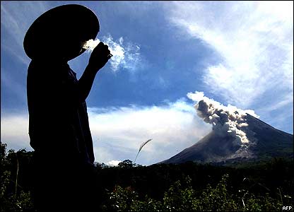 Endonezya'daki Merapi Yanardağı'nın çevreye saçtığı kül, kaya ve gazlar binlerce kişinin bölgeyi terketmesine yol açtı