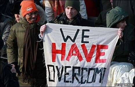 Pek çok Amerikalı için, Afrika kökenli bir Amerikalı'nın Beyaz Saray'a gelmesi ABD'nin geçmişteki ırk ayrımcılığına dayalı politikalarının üstesinden geldiğinin bir kanıtı olarak görülüyor. |