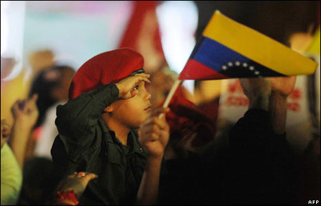 Venezuela lideri Chavez'in taraftarları referandum zaferini coşkuyla kutladı.