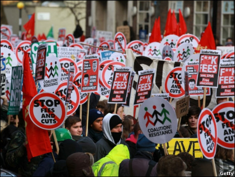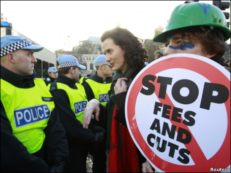 英国大学学费涨价、高教经费削减、学生抗议、最新消息。