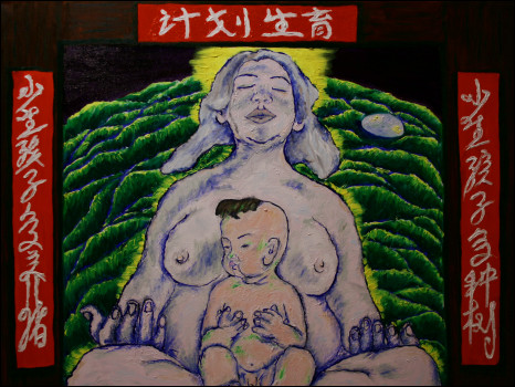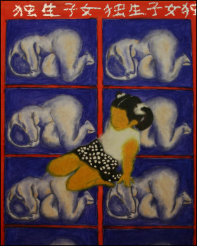 9月25日是独生子女政策实施30周年。这幅名为“涅磐”的作品象征“母以子贵”,女性生了儿子一下子就有了崇高的地位。