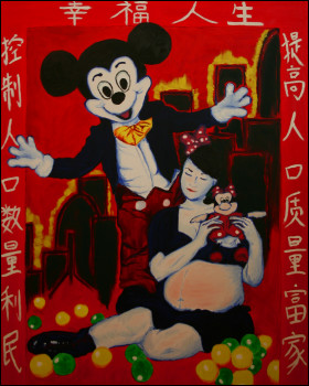米老鼠象征西方文化,意味着中国要借独生子女让国家富强,赶上西方。