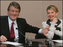 “Йти у владу можна тільки тоді, коли ти можеш щось змінювати. А якщо ти будеш асистентом у чужих рішеннях, то краще (і я маю такий досвід) не брати на себе зобов’язання бути асистентом і “цапом-відбивайлом” у чужих рішеннях”, - сказала лідерка БЮТ. Коли Юлію Тимошенко запитали, чи готова вона буде подати руку президенту, попри образи і відставку з посади керівника уряду, вона відповіла так: “Завжди згадую висловлювання королеви Вікторії, яка своїй доньці, яка брала шлюб і мала не дуже гарного нареченого, перед її шлюбною ніччю говорила: заплющ очі і думай про Англію. Тому я вважаю, що треба заплющити очі і думати про Україну. Бо певні єднання є невідворотними. Потрібно це робити, тому що просто немає іншого виходу”. | Також на цю тему Тимошенко: хто з ким формуватиме коаліцію?21 березня, 2006 | УКРАЇНА Наша Україна - за коаліцію до виборів у ВР01 березня, 2006 | УКРАЇНА Тимошенко за коаліцію після денонсації20 лютого, 2006 | УКРАЇНА Тимошенко: Коаліції - так! Газовим угодам - ні! 20 лютого, 2006 | УКРАЇНА Тимошенко: Я втомилася від розмов про коаліцію16 лютого, 2006 | УКРАЇНА Тимошенко: блок НСНУ і 'Регіонів' - небезпечний02 лютого, 2006 | УКРАЇНА | ||||||||||||||||||||||||||||||||||||||||||||||||||||||||||||||||||||||||||||||||||