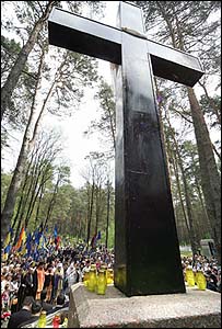 У церемонії вшанування пам'яті жертв репресій взяли участь окрім президента прем'єр-міністр України Юрій Єхануров, мер Києва Леонід Черновецький, голова тимчасової робочої групи з підготовки першого засідання Верховної Ради Іван Бокий, члени Кабінету міністрів. Після покладання квітів до меморіального каменю відбулась панахида, яку відправили служителі українських церков. Біля селища Биківня у 1930-х - початку 1940-х років здійснювались масові поховання осіб, репресованих і страчених у Києві органами НКВД. Офіційно будівництво спеціальної зони для таємних поховань розпочалося 1936 року. З того часу у Биківнянському лісі в таємно до окупації німцями Києва систематично ховали знищених жертв комуністичного режиму. 30 квітня 1994 року відбулося відкриття Биківнянського меморіального комплексу. 2001 року Кабінет Міністрів України під керівництвом Віктора Ющенка ухвалив Постанову "Про створення Державного історико-меморіального заповідника "Биківнянські могили". | Також на цю тему Віктор Ющенко: 'Подаймо одне одному руки' 12 травня 2006 | ПРЕСА Ющенко зустрівся з силовиками10 травня, 2006 | УКРАЇНА Ющенко закликав ВР вшанувати УПА09 травня, 2006 | УКРАЇНА | ||||||||||||||||||||||||||||||||||||||||||||||||||||||||||||||||||||||||||||||||||