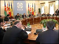 Грузинський президент Міхаїл Саакашвілі вважає, що новий альянс відображає нові інтереси країн-членів: "Те, що ми створили, це не просто міжнародна організація зі штаб-квартирою в Києві. Вона відображає нові реалії в наших країнах і нові інтереси, які з’явилися в наших країнах за останні кілька років. Я вважаю, що наші країни дуже швидко розвиваються попри всі перешкоди. Дуже важливо також, що в час, коли проти України, Грузії і Молдови запроваджено економічні санкції та ембарго, ми домовилися про створення зони вільної торгівлі між нашими чотирма країнами. Це дасть особливі результати і особливий зиск усім нашим країнам, громадянам, виробникам, експортерам та імпортерам цих країн". Президент Ющенко заявив, що Україна, передовсім, зацікавлена у нових нафтотранспортних проектах, зокрема, у транспортуванні нафти з Азербайджану та Казахстану до великих споживачів в ЄС. Тим часом, президент Молдови Владімір Воронін наголосив, що парламент Молдови розгляне питання, винесена депутатами від опозиції, про вихід Молдови з СНД: "Ми не хочемо проти будь-кого спрямовувати діяльність цієї організації. Вона нам потрібна для вирішення питань, які є у нас, в наших країнах. У відповідності зі статутом, ця організація відкрита для членства в ній інших країн". Раніше президент Ющенко наголошував, що не вважає ГУАМ противагою СНД. | Також на цю тему ГУАМ прагне зменшити енергетичну залежність від Росії23 травня, 2006 | УКРАЇНА Учасники саміту ГУАМ прибули до Києва22 травня, 2006 | УКРАЇНА ГУАМ стане міжнародною організацією24 лютого, 2006 | УКРАЇНА Член Пори каже, що затримання в Баку було політичним19 вересня, 2005 | УКРАЇНА Ющенко: Україна може завалити вступ до СОТ20 травня, 2005 | УКРАЇНА | ||||||||||||||||||||||||||||||||||||||||||||||||||||||||||||||||||||||||||||||||||