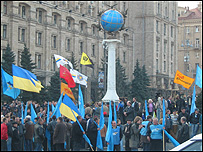 Лідерка БЮТ Юлія Тимошенко закликає своїх прихильників відмовитися від мітингів. А депутати від коаліції заявляють, що їх прибічники залишаться на Майдані до винесення постанови Конституційного суду. Водночас, голова Парламенту Олександр Мороз пропонує накласти мораторій на вуличні акції до вирішення ситуації з розпуском парламенту в суді. Майдан явно змінив своє забарвлення. Сюди перемістили частину наметового містечка, яке вчора розбили в Маріїнському парку прихильники Парламентської більшості.