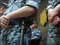 Тому, за словами керівника внутрішніх військ, 25 травня Президент України Віктор Ющенко, зважаючи на небезпеку залучення внутрішніх військ до виконання різноманітних функцій, які їм не властиві, видав свій указ про перепорядкування внутрішніх військ главі держави. При цьому генерал Кіхтенко наголосив, що внутрішні війська залишаються у складі МВС. За його словами, у внутрішніх військ продовжується тісна співпраця та взаємодія з Міністерством внутрішніх справ: «Внутрішні війська залишаються поза політикою». 25 травня, Президент України Віктор Ющенко своїм Указом вивів внутрішні війська з підпорядкування Міністерства внутрішніх справ і підпорядкував їх главі державі. Крім того, своїм розпорядженням доручив внутрішнім військам охороняти громадський порядок навколо важливих державних об’єктів. Того ж дня Верховна Рада України визнала укази Президента України щодо перепідпорядкування внутрішніх військ, забезпечення держохорони та щодо Генпрокуратури такими, що не підлягають виконанню. ВР рекомендувала Кабінету міністрів України забезпечити неухильне виконання МВС України Закону «Про внутрішні війська Міністерства внутрішніх справ» та інших законів України. | Також на цю тему Ющенко: дехто намагається зірвати домовленості30 травня, 2007 | УКРАЇНА Попов: законопроекти для виборів не готові30 травня, 2007 | УКРАЇНА Генеральні прокурори України судяться за посаду29 травня, 2007 | УКРАЇНА Внутрішні війська і Беркут - на свої бази поза Києвом27 травня, 2007 | УКРАЇНА Внутрішні війська стоять під Києвом26 травня, 2007 | УКРАЇНА Шемчук скасував накази Піскуна26 травня, 2007 | УКРАЇНА | ||||||||||||||||||||||||||||||||||||||||||||||||||||||||||||||||||||||||||||||||||