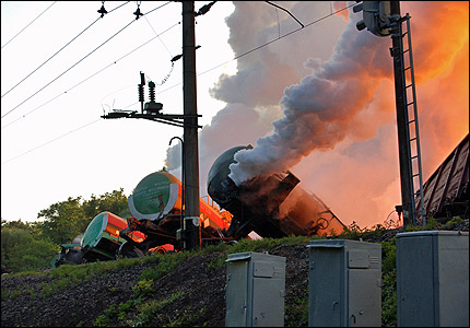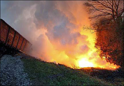 У понеділок увечері між селами Ожидів та Запомар'є Бузького району зійшли з колії 15 цистерн з жовтим фосфором. Фото Укрінформу
