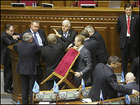 Верховна Рада сьогодні так і не змогла поновити сесію, бо опозиція блокувала засідання парламенту, висуваючи свої вимоги щодо порядку роботи. Коаліція називає вимоги опозиції лише приводом для відтягування голосування щодо кандидатури Юлії Тимошенко, яку президент повторно вніс на розгляд Ради. Президент Ющенко повторно подав Верховній раді кандидатуру Юлії Тимошенко на посаду прем’єр-міністра, після того як учора для її затвердження забракло лише одного голосу.