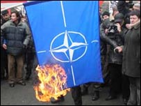 У Сімферополі відбулися протести проти членства України в НАТО. На заклик Партії регіонів, комуністів, прогресивних соціалістів і соціал-демократів об’єднаних у протесті, згідно з офіційними даними, взяли участь щонайменше три тисячі осіб. Учора президент Ющенко, перебуваючи на економічному форумі в Давосі, заручився підтримкою американського державного секретаря Кондолізи Райс на користь євроатлантичної інтеграції України. Згідно з даними опитування, проведеного фондом Демократичні ініціативи та фірмою Юкрейніан соціолоджі сервіс, понад 60% українців готові взяти участь у референдумі щодо членства України в НАТО. ЗА вступ проголосували б 32%, проти висловилися би 53%. | Також на цю тему Ющенко: влада єдина щодо курсу у НАТО24 січня, 2008 | УКРАЇНА Росія дозволить Києву інвентаризацію ЧФ24 січня, 2008 | УКРАЇНА Опозиція протестує проти ПДЧ України в НАТО23 січня, 2008 | УКРАЇНА Держсекретар США підтримує вступ України до НАТО23 січня, 2008 | УКРАЇНА Ющенко: європейська мета України в ЄС та НАТО22 січня, 2008 | УКРАЇНА Кремль застерігає Україну від НАТО22 січня, 2008 | УКРАЇНА Росія не віддає радіонавігаційну станцію у Генічеську21 січня, 2008 | УКРАЇНА | ||||||||||||||||||||||||||||||||||||||||||||||||||||||||||||||||||||||||||||||||||