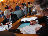 Голова фракції Партії регіонів у Верховній Раді та лідер опозиції Віктор Янукович переконаний, що Президент України Віктор Ющенко не мав права "однобічно підтримувати" Грузію в її конфлікті з Росією від імені Української держави. Про це пан Янукович заявив сьогодні журналістам, оголошуючи заяву фракції ПР щодо грузинсько-російського конфлікту: “Україна знаходиться у дуже складній ситуації через фактичну участь держави у грузинсько-російському конфлікті. Ми можемо брати участь у його врегулюванні лише на миротворчих засадах. Заяви українських керівників на підтримку Грузії призводять до того, що сьогодні ми маємо дуже конфліктну ситуацію з Російською державою”. Між тим політик зауважив, що, “безумовно, Віктор Ющенко, як людина, враховуючи його стосунки з Міхаїлом Саакашвілі, можливо, прийняв правильне рішення. Але Президент України не мав право однобічно підтримати Грузію від імені Української держави”, - наголосив Віктор Яукович. Він також додав, що Україна "не повинна обслуговувати" інтереси США в їхньому протистоянні з Росією: “Ми повинні дбати про свою безпеку і національні інтереси України”. Сьогодні фракція Партії регіонів ухвалила і розповсюдила заяву щодо грузинсько-російського конфлікту, в якій, зокрема, засуджує дії і позицію української влади у цьому питанні і пропонує припинити у майбутньому постачання зброї до Грузії. Партія регіонів планує у перший день роботи Верховної Ради домагатися оцінки дій української влади в ході конфікту на Кавказі. Фракція регіонів також хоче вимагати якнайшвидшого проведення референдуму щодо доцільності приєднання України до плану дій щодо членства в НАТО і вступу до альянсу. Лідер Партії регіонів Віктор Янукович, котрий протягом усього грузино-російського конфлікту уникав коментарів, сьогодні заявив, що дії офіційного Києва зіпсували стосунки України із Росією. До критики КПУ приєднався Литвин