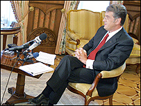 Президент Віктор Ющенко заявив, що очікує появи нового уряду України до 1 січня 2009 року і що саме на нову коаліцію і новий Кабінет Міністрів ляже головна відповідальність за подолання економічної кризи в країні. Таким є оптимістичний прогноз Віктора Ющенка, хоча президент і попереджає, що перед тим, як іти на вибори, чинний парламент має ухвалити пакет антикризових заходів. Чи може статися так, що Віктор Ющенко вкотре перенесе дату виборів, зважаючи на те, що у Верховній Раді розгляд економічних законопроектів та змін до держбюджету знову відкладено? Таким було одне із питань, що пролунало під час інтерв’ю президента Ющенка чотирьом іноземним радіокомпаніям, в тому числі Бі-Бі-Сі. Із президентом розмовляла і наш кореспондент Світлана Дорош