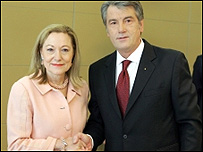 Оглядачі у Брюсселі назвали появу на форумі ЄНП Віктора Ющенка та Юлії Тимошенко "подвійною неприємністю", через конфлікт між українськими урядовцями. Однак, президент і прем'єр-міністр України провели спільну зустріч з президентом Європейської народної партії Вілфредом Мартенсом. Про це повідомила прес-секретар прем'єр-міністра України Марина Сорока. Вона уточнила, що спочатку відбулася зустріч Юлія Тимошенко з президентом ЄНП у форматі тет-а-тет, а потім до них приєднався і Віктор Ющенко. Марина Сорока також повідомила, що до цієї зустрічі Юлія Тимошенко зустрічалася з Генеральним секретарем ради ЄС, Верховним представником з питань загальної зовнішньої політики і політики безпеки Хав’єром Соланою. Сам Віктор Ющенком назвав принизливими імовірні спроби примирити його у ЄС з власним керівником уряду: "Я би не хотів, щоб відносини президента і прем’єра малювалися у таких фарбах – що це люди, які конфліктують, що це люди, які не здатні зреалізувати ті чи інші плани. Це не так. І я б не хотів, щоб десь у Європі давали поради, що робити, це принизливо. Крім української сторони, ці питання ніхто не вирішить". Напередодні пан Ющенко обговорив питання двосторонньої співпраці і міжнародні проблеми з президентом Єврокомісії Жозе Мануелем Баррозу і генеральним секретарем Ради ЄС Хав’єром Соланою. Окремо йшлося про завдання енергетичної безпеки і в цьому контексті - про проведення міжнародної конференції з модернізації газотранспортної системи України, яка відбудеться у Брюсселі 23 березня. Президент Ющенко назвав це важливим питанням для України і Європи. |