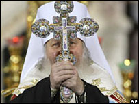 Патріарх Московський і Всія Русі Кіріл сьогодні під час зустрічі з прем'єр-міністром України Юлією Тимошенко заявив, що готовий робити все від нього залежне для розвитку українсько-російських відносин. Патріарх відзначив важливість церковних і духовних відносин між народами для розвитку відносин між Україною і Росією на всіх напрямках. Він підкреслив, що в Росії Київ вважають духовним центром російського православ'я. «Для Російської православної церкви це наш Константинополь. Я готовий від себе робити все залежне, щоб розвивалися відносини між Росією і Україною», - сказав патріарх Кіріл. Він також висловив сподівання, що в особі українського уряду знайде підтримку такої позиції, оскільки Україна і Росія разом становлять опору східної православної цивілізації. У свою чергу, Юлія Тимошенко висловила згоду з позицією патріарха, а також задоволення тим, що в липні він має намір здійснити перший закордонний візит саме в Україну. За словами Юлії Тимошенко, вона постарається зробити так, щоб під час цього візиту патріарх почувався комфортно. Під час зустрічі патріарх Кіріл подарував прем'єру України виготовлену спеціально для неї «дорожню» невелику ікону. У відповідь Юлія Тимошенко подарувала патріархові двоє сувенірних пасхальних яєць. | Також на цю тему Україна проситиме Москву не карати за газ27 квітня, 2009 | УКРАЇНА Тимошенко: японські інвестиції убезпечені29 березня, 2009 | УКРАЇНА Ю.Тимошенко: на Україну чекають важкі часи11 березня, 2009 | УКРАЇНА Economist: “Шоу Віктора і Юлії, продовження” 24 квітня, 2009 | БІЗНЕС | ||||||||||||||||||||||||||||||||||||||||||||||||||||||||||||||||||||||||||||||||||