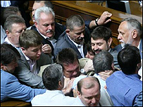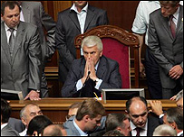 Голова Верховної Ради Володимир Литвин закрив сесію парламенту минулого тижня оголошенням, що "депутати плюють на український народ". Він також заявив про намір взяти участь у чергових виборах президента, оскільки, влада цілеспрямовано “вводиться в параліч, демонструє свою повну неадекватність і бездіяльність». Володимир Литвин зазначив, що будь-які його ініціативи, щоб «звести разом всіх українських очільників і спільно визначити перелік необхідних завдань», не знаходять підтримки. «Всі ці заклики розбиваються об стіну нерозуміння, більше того - ревнощів і політичного спротиву». Впродовж вихідних, президент Віктор Ющенко оголосив про початок своєї перевиборчої кампанії під час сходження на Говерлу. | Також на цю тему Янукович передбачає скликання ВР19 липня, 2009 | УКРАЇНА Верховну Раду скликають на п'ятницю16 липня, 2009 | УКРАЇНА Депутати ПРУ заблокували парламент14 липня, 2009 | УКРАЇНА З'їзд 'Батьківщини' напередодні виборів15 липня, 2009 | УКРАЇНА У Раді хочуть розслідувати слідчого ГПУ 14 липня, 2009 | УКРАЇНА ''Батьківщина'' йде на президентські вибори14 липня, 2009 | УКРАЇНА | ||||||||||||||||||||||||||||||||||||||||||||||||||||||||||||||||||||||||||||||||||