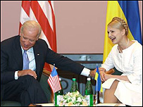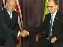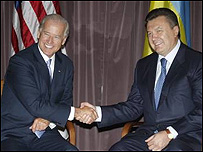 Віце-президент США Джозеф Бай ден знову запевнив, що перезавантаження відносин між Росією та США не позначиться негативно на Україні: «Перезавантаженням наших відносин з Росією ми при цьому підтверджуємо нашу підтримку незалежній Україні». При цьому Віце-президент США вважає, що Україна має здійснити серйозну реформу енергетики для скорочення її залежності від зовнішніх постачальників. «Реформа вашого сектора енергетики повинна скоротити вашу залежність від зовнішніх постачальників», - сказав віце-президент США. Крім того, на його переконання, перехід до ринкового ціноутворення за електроенергію це є «хоробрий і необхідний крок». Джо Байден вважає, що Україна використовує утричі більше енергетики, ніж в середньому у Європейському Союзі. Президент України Віктор Ющенко та віце-президент США Джозеф Байден домовились про створення Українсько-Американської комісії зі стратегічного партнерства. Тимошенко і Байден зустрілися незаплановано?