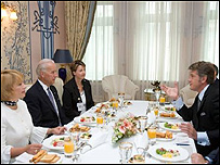 Народний депутат України, лідер «Фронту змін» Арсеній Яценюк і віце-президент США Джозеф Байден обговорили питання глобальної економічної кризи та шляхи її подолання. Як повідомили в прес-службі “Фронту змін”, після зустрічі Арсеній Яценюк поінформував, що йшлося “про економічний порядок денний – глобальну економічну кризу, про те, які перспективи, шляхи виходу, реформи проводяться у США”. Відповідаючи на запитання журналістів, чи було порушено на зустрічі тему президентських виборів в Україні, кандидат у президента сказав: «Я думаю, що президентські вибори не могли бути темою цієї зустрічі з однієї простої причини – тому що це вибори Президента України, а вибори Президента України обговорюються виключно в Україні». Журналісти поцікавилися в лідера “Фронту змін”, чи повторив Дж.Байден, як і на попередніх зустрічах з кандидатами в Президенти України, фразу: “Можливо, я розмовляю з майбутнім Президентом”. Арсеній Яценюк відповів: “Із попередниками була розмова з перекладачем – можливо, щось не так переклали, а зі мною діалог вівся англійською мовою, тому ми не розпочинали розмову про президентські перегони – хто буде Президентом, хто не буде, оскільки це визначить народ України”. “У Сполучених Штатах визначають американці, у Росії – росіяни, а в Україні – українці визначать, хто буде Президентом нашої держави”, - додав він. |