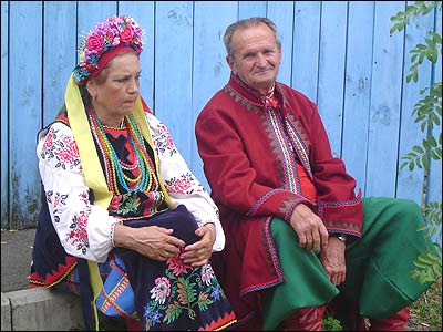 А це - українці з білорусьского Полісся. У старовинних полотняних сорочках, що збереглися від бабусі.