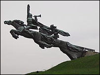 Львівська міська рада на засіданні 10 травня підтримала заяву фракції Всеукраїнського об'єднання "Свобода" про створення депутатської комісії, яка б визначила, які символи "імперсько-більшовицького панування" можуть бути демонтовані в місті. Водночас Львівська міська рада не ухвалила конкретного рішення про демонтування радянських пам’ятників. Як повідомили у фракції Всеукраїнського об'єднання "Свобода", до комісії, яка здійснюватиме інвентаризацію пам’ятників, будуть включені архітектори та мистецтвознавці, а після інвентаризації мають відбутися громадські слухання. Чи слід визначатися Україні зі спадщиною радянських монументів? Дякуємо усім дописувачам - цей форум закрито. Запрошуємо брати участь в обговоренні інших тем. Думки висловлені на форумі не відображають позицію Бі-Бі-Сі. Ігор з Олександірії, як видно не проти під шумок з памятниками, «надати незалежність Західній Україні від донецької хунти». Дякуємо і за це. Але, повертаючись до памятників «вождям революції» власне в Олександрії, зауважимо, що в цьому славному степовому місті їх аж два. Один тулиться в сквері біля вокзалу. На ньому стоїть Ілліч й показує балтійскому моряку, що треба йти на Україну війною, придушити наміри УНР здобути свою державу. Ця композиція вражає передусім чужим, неукраїнським одягом. В гарячому степу стоять люди в північних шинелях. З гвинтівкою, – тим самим багнетом, що пізніше приніс Голод. Другий памятник воджю не менш знаковий. Він височіє в центрі міста і відомий тим, що, здається 1975 року про нього повідомив «Голос Америки», – мовляв, чомусь в Олександрії не відривають памятник вождю революції. Затримка ж бо вийшла через помилку скульптора, одна рука в скульптурі непропорційна. Але після розголосу «ворожої радіостанції» памятник відкрили. …То хіба такі! речі варта щоб їм поклонятися. І не треба ці «скульптурні твори» ставити з ряд священною памяттю про солдатів, партизанів, героїв і мучеників. Російська влада Путіна дуже розпадаеться за свої памятники, що ще посьогодні стоять в пост Радянських країнах. Після другої світової війни режим Сталіна, Берії, та Хрущова зруйнували тисячі українських релегійних та віськових монументів солдатів українських Січових Стрільців в західній Україні. За повідомленнями преси в московському селі Апрелівка знесли памятник українського пілота , і чомусь а Україні ніхто не демонстрував, а росіяни розпадаються за радянськими застарілими та нікому вже непотрібними монументами. У європейській практиці пам'ятники не демонтуються - вони залишаються для нагадування прийдешнім поколінням, відіграючи своєрідну моральну роль, такий собі "корсет" совісті. Це - матеріалізована пам'ять, щоб у майбутньому позбавити себе повторювання помилок минулого. Можна (потрібно) зносити памятники, які не мають історичної цінності, яких безліч (бюсти леніну і т. д.). Але це на першочергово. На мій погляд в даний момент намагаються відволікти увагу людей в Україні, Росії, Естонії... від інших більш важливих проблем - це бідність, корупція, наркоманія та злочинність Московська влада щойно зруйнувала монумент українському пілоту у містечку Апрєлівка, який загинув захищаючи столицю СРСР від Люфтваффе. Просто знесли, щоб розширити собі дорогу. І ніхто не кричить, що московська влада фашисти, як кричать про владу Таллінна. Укр