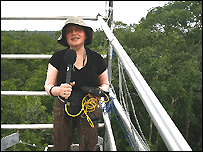 Якщо я навіть потрапляю до літака, то завжди охоче поступаюся місцем біля вікна – бо роздивлятися краєвиди з висоти для мене нестерпно. Ми практично ніколи не відпочиваємо з родиною в горах, а якщо і судилося колись опинитися на якомусь «серпантині», я завжди заплющувала очі аж доки ми знову не опинялися на твердій, себто рівні землі. Кульмінацією цієї подорожі була мандрівка до міжнародного наукового центру під назвою Масштабний біосферно-атмосферний експеримент – це така велика дослідницька ініціатива, під час якої вчені різних країн намагаються розв’язати численні таємниці Амазонії та її тропічного лісу. Наприклад, чим пояснити унікальне біологічне розмаїття тропічного лісу у порівнянні із «звичайним? Чому тут, скажімо, ссавців вдвічі більше на одиницю площі? Або чим пояснити, що саме тропічний ліс працює мов така собі фабрика дощів», і ділиться тими дощами мало не з цілим світом? Зрозуміло, мені дуже хотілося розпитати про це науковців цього центру, але тут я поставала перед вибором. Центр, як можна собі уявити, знаходиться в джунглях, і дороги туди немає, отож частину шляху довелося діставатися на таких собі чотириколісних мотоциклетах. Вже це, само по собі, не було приємною новиною для мого вестибулярного апарату. Але справа навіть на в цьому: вчені ведуть спостереження за джунглями за допомогою величезних оглядових веж, оснащених вимірювальною апаратурою. Отже, і у нас був шанс піднятися на одну з таких веж, і по-справжньому відчути безкрайність джунглів, подивившись на них з висоти 54 метрів – себто приблизно 15-20 метрів над верхівками дерев. Ще одна спокуса – провести просто звідти прямий ефір! Мене просто розривало на частки: встояти перед спокусами мені завжди було важко, але і уявити себе на такій висоті я ніяк не могла. Вежа, як ми дізналися, - то така собі металева конструкція, - всередині якої 14 металевих же драбин, а між ними – невеличкі майданчики. Всього десь 250 сходинок. Вагання роздмухував наш радник з безпеки Колін, якому явно не хотілося зайвого клопоту на свою голову. Він заздалегідь демонстрував нам картинки, і без кінця перепитував: чи впевнені ми, що не знепритомніємо, не злякаємось і одним словом що нас не треба буде знімати мов кошенят з дерева? Щодо себе, то гарантувати цього, поклавши руку на серце, я не могла. Але знову ж таки – ну, як від такого відмовитися?? Врешті-решт, оскільки спокуса таки перемогла, і я вирішила їхати, а не залишатися з іншою групою в Манаусі, то вийшло так, що на ту вежу мені довелося видертися тричі. Полізла перший раз, щоб роздивитися і записати різних звуків і також свої враження для майбутніх спеціальних програм, які я готуватиму після повернення до Лондона. Цим першим разом я досить таки пишаюся, бо драбина хиталася, земля, а тоді і дерева відпливали униз, а в одній руці я тримала мікрофон. Гадаю, дісталася я до верхівки лише тому, що повертати донизу здавалося ще страшніше, ніж пертися далі угору! Проте вдруге дертися на ті ж таки драбини мені довелося якраз завдяки тій же моїй приборканій, але невмирущій тенденції щось забувати чи губити. Цього разу – власне коли вперше долізла по тих драбинах майже, але ще не зовсім до верхівки, я раптом згадала, що до чергового прямого ефіру залишається лише якихось 15 хвилин, а загубила я нашого звукорежисера Саймона Чергвіна! Я була впевнена, що 