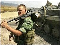 Аналізуючи події на Російсько-Грузинській війні не можна не звернути уваги на дивну методику проведення операції так званого "геноциду" грузиньскою стороною. Погодьтесь, плануючи воєнну акцію, доцільно врахувати якомога більше факторів, у тому числі і присутність поблизу великої кількості військ потенційного супротивника. І якщо умови не сприятливі дочикатись іншої миті. Чи не так? Грузинська армія веде себе геть протилежно - робить наскок для того щоб миттєво отримати удар у відповідь? Не логіно. Логічною така поведінка стає, якшо припустити шо грузини діяли в умовах цейтноту, якщо їхньою ціллю було інше - якщо не зірвати то принаймні спутати плани, набагато більш сильнішому супротивнику, при проведенні набагато більш масштабного плану... На корисьть таких міркуваннь свідчить те як блискавично "миротворці" відреагували на "абсолютно неочікуванну" ними "агресію". Той хто бодай трохи цікавився воєнною справою знає, що переміщення воєнних частин - справа не швидка і скла! дна. Тим паче в горах. По-друге, російська держава завжди байдуже ставилася до загибелі своїх громадян, (Беслан, Норд-ост, Курськ та ін.) дуже важко повірити в те що керівництво РФ возлюбило осетин як самих себе, навіть якщо у тих російські паспорти. Тут у росіян "любов з інтересом". Отже, моя думка, агрессор - Россія. Грузія зробила багато помилок, якими Росія скористалась. Головне що отримала Росія - піднесення свого населення: які ми могутні, тільки ми єдині в світі прагнемо і не жаліємо себе ради миру та справедливості. З таким настроєм керівники Росії ще менше будуть слухати якісь зауваження. І впевен - не бояться вони ні світової ізоляції(тому що все одно її той же же Кітай не буде підтримувати), ні виключення з всяких G8, тому це ще більш дасть впевненості россіянам - ми янголи, от нас і не терплять злодії. А з впевненої в своєй правоті людини виходить дуже добрий солдат. Німці теж колись були впевнені. І не сумнівались ні краплини. Читаючи думки росіян, що тут, що в інших місцях: побачити росіянина з думкою: "А може не так вже й вірно зробила моя країна?" диво. А Грузію шкода. Використали як полігон. Доти, поки захід не засудить напад Саакашвілі, у нього не буде морального права звінувачувати Росію. Зараз, це все виглядає досить сумнівно. Сподіваюсь на більш активну роль ЄС у розвязанні цього конфлікту.