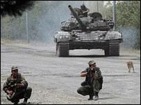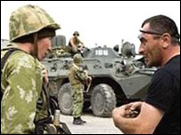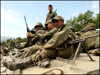 Конфлікту Росії з Грузією немає. Грузія виконує старий план англо-саксів з видавлення росіян з Кавказу. Моська Саакашвіллі відверто виконує замовлення американців. Ющенко теж поїхав на площу у Тбілісі. Українці йому не давали такий мандат. Росія була, є і буде, а американські посіпаки Ющенко та Саакашвілі зникнуть. Україні слід якнайшвидше вступати до НАТО, бо усі розмови про нейтральність нічого не варті. Росія почувається як хижак, який мріє про наступну здобич. Вона поважає тільки силу і поведінка лідерів цієї країни, і той шовінізм в російських ЗМІ лише цьому підтвердження. Реба спокійно і наполегливо звільнятися від обіймів північного сусіда. А до людей і керівництва Грузії у мене лише з»явилося більше поваги. Люди, що ви пишите. Росія отримала лише головний біль і необхідність відбудови Цхінвалі. Цю операцію спланували в ЦРУ з метою підштовхнути вас у НАТО! РУСЛАН, УКРАЇНА: Прочитайте про конфлікт тут http://news.bbc.co.uk/hi/russian/entertainment/newsid_7557000/7557523.stm, і можливо зрозумієте, чому Грузія пішла на такий крок. Це я тим товаришам, які так захищають ніби-то Осетію, а насправді Російську Імперію. Починалось усе не вчора, і не з Грузії. Крім того, згадайте Радянський Союз і Чехословаччину, Угорщину, Анголу, Авганістан, і багато інших. То все воїни-інтернаціоналісти допомогу надавали народам, які їх про це не просили. Ну а тепер це називається миротворчі сили і принудженням до миру. Зроблять рабами - і мир.