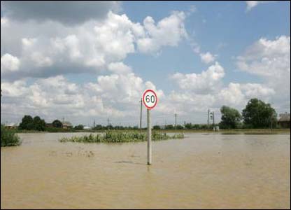 Затоплена вулиця в одному з сіл у Львівській обл., 25 липня 2008 р. Фото УНІАН