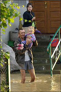 Евакуація людей в одному з гірських районів Львівської обл., 25 липня 2008 р. Фото УНІАН