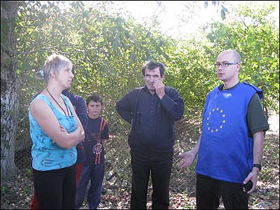 Спостерігачі місії Європейського Союзу спілкуються з місцевими мешканями села Сацихурі (буферна зона). | ||||||||||||||||||||||||||||||||||||||||||||||||||||||||||||||||||||||||||||||||