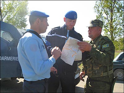 Європейські спостерігачі радяться з російськими миротворцями, як краще доїхати до цільового населеного пункту.