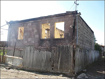 Європейські спостерігачі біля звичайного будинку у селі Церонісі, що у буферній зоні.
