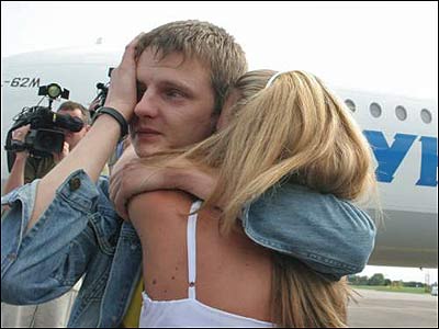 Українцям не вперше бути в сомалійському піратському полоні. Обійми зі звільненим членом екіпажу судна «Леманн Тімбер», в аеропорті “Бориспіль” у липні минулого року
