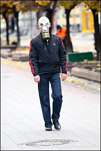 Деякі мешканці Івано-Франківська використовують радикальні засоби для протидії грипу та ГРВІ, 31 жовтня 2009 року в Івано-Франківську. Фото Укрінформу