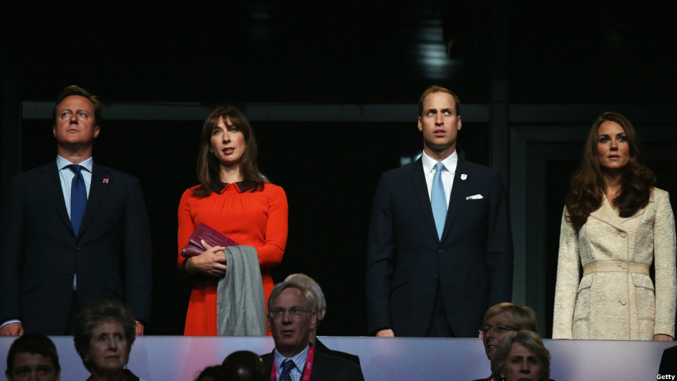 Також присутні герцог та герцогииня Кембриджські та британський прем'єр Девід Камерон із дружиною Самантою.