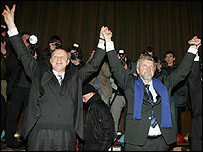 Голова місії СНД Владімір Рушайло схвально відгукнувся щодо виборів у Білорусі, і відкинув критику з боку міжнародної спільноти. Вибори у Білорусі у центрі уваги українських політичних сил, які намагаються включити це питання у власну передвиборчу боротьбу. Попри те, що офіційної реакції Києва на перемогу Александра Лукашенка ще немає, Блок Костенка -Плюща заявив, що сьогодні блокуватиме пункт перетину на кордоні між Україною та Білоруссю у Городищі з вимогою звільнення політичних в'язнів у Білорусі. Згідно з офіційними результатами президентських виборів перемогу з здобув Аляксандр Лукашенка, у якого понад 80 відсотків голосів виборців. Представники ЦВК повідомили, що у його опонента Аляксандра Мілінкевіча 6 відсотків. Опозиційні партії Білорусі назвали результати виборів підтасованими, а пан Мілінкевич закликав до перевиборів. | Також на цю тему Александр Лукашенка втретє став президентом20 березня 2006 | Головна сторінка Президентські вибори в Білорусі19 березня 2006 | Головна сторінка Економічне диво Аляксандра Лукашенки 16 березня 2006 | ДОКЛАДНО Українських журналістів звільнили в Мінську13 березня 2006 | Головна сторінка Білорусь: 15 діб для 10 опозиціонерів09 березня 2006 | Головна сторінка В Білорусі зростає напруженість перед виборами03 березня 2006 | Головна сторінка | ||||||||||||||||||||||||||||||||||||||||||||||||||||||||||||||||||||||||||||||||||