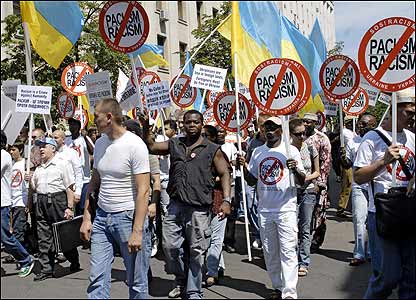 | Також на цю тему В Україні набувають поширення расистські напади 20 червня, 2007 | УКРАЇНА Міськрада Нью-Йорка заборонила слово "nigger" 01 березня 2007 | Головна сторінка Преса - про уряд і перше вбивство на расовому ґрунті02 листопада 2006 | ПРЕСА Ще одне жорстоке вбивство іноземця в Росії25 вересня 2006 | Головна сторінка Інші сайти Бі-Бі-Сі не несе відповідальності за зміст інших сторінок на інтернеті | ||||||||||||||||||||||||||||||||||||||||||||||||||||||||||||||||||||||||||||||||||