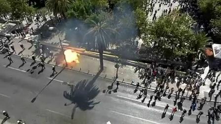 Сутички з поліцією спалахнули під час маршу анархістів, які на центральній площі в Афінах почали кидати пляшки з запалювальною сумішшю та шматки бетону в поліцію.