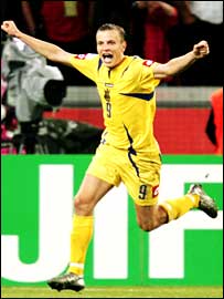 Швейцарська німецькомовна газета Neue Zuercher Zeitung висловила свої враження від матчу з українською збірною ємким заголовком статті: «Швейцарський страх перед 11-метровим». Neue Zuercher Zeitung нагадує хронологію найгарячіших хвилин гри і, на відміну від британських видань, які левову частку повідомлень про українську команду головно присвячують Андрієві Шевченку, відзначає молодого форварда Артема Мілевського: «Тоді як у швейцарських гравців явно здавали нерви, запасний гравець українців Артем Мілевський не втрачав самоконтролю. У стилі чеха Антоніна Паненки в 1976-му, він «підвісив» м'яч, ледь не торкаючись штанги в самісіньку середину воріт після того, як Транквілло Барнетті не вдалося влучити в ворота, потрапивши в штангу, а Рікардо Кабанас мав невдалий удар знизу. Тим часом Сергій Ребров та Олег Гусєв привели Україну завдяки влучно використаним пенальті до чвертьфіналу. А тренер української збірної Олег Блохін під час тих ударів переховувався за лаштунками стадіону».