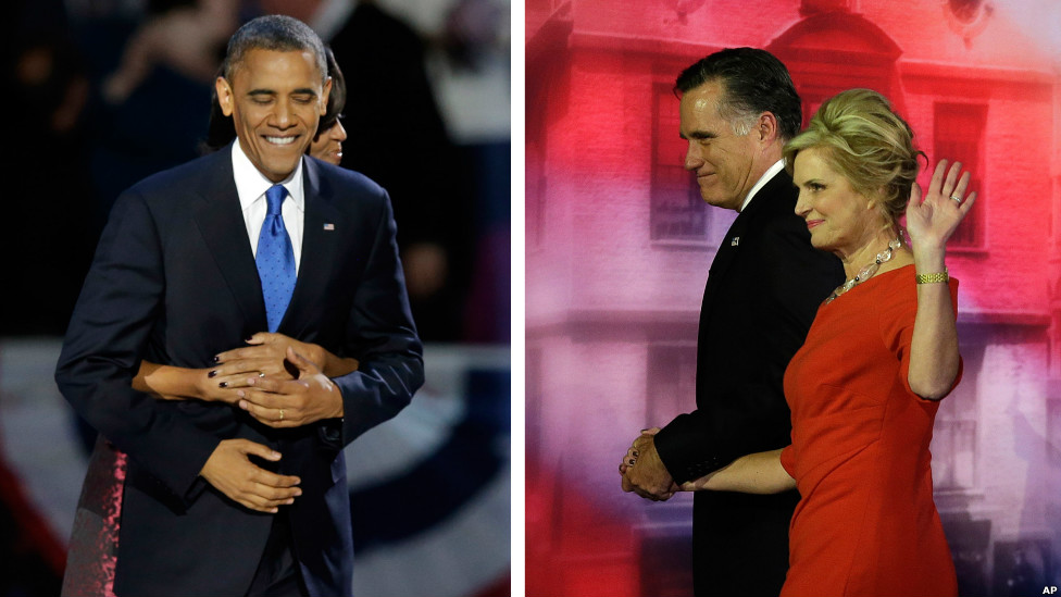 Митт Ромни тоже ожидал результатов выборов вместе с женой и отреагировал на свое поражение достойно. Кандидат от республиканцев пожелал сопернику на выборах успехов ради процветания США