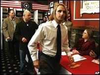 Виборчі комісії очікують рекордної активності - приблизно 135 мільйонів виборців. Багато з них молоді, а також представники чорношкірої громади, які досі не голосували жодного разу в житті. Губернатор Флориди Чарлі Крайст вже сказав, що у разі потреби продовжить час голосування. Але у штаті Вірджинія, де виборці можуть проголосувати за демократа вперше з 1964-го року, влада, обуривши багатьох, заявила, що жодних змін не передбачає. Обидва кандидати голосують у своїх штатах. Джон Маккейн в Арізоні, а Барак Обама в Чикаго - він сказав, що, очікуючи на результати, гратиме в баскетбол. | Також на цю тему Президентська кампанія на фінішній прямій04 листопада, 2008 | СВІТ Кандидати у переддень виборів у США 03 листопада, 2008 | СВІТ Останні дні виборчої кампанії у США01 листопада, 2008 | СВІТ | |||||||||||||||||||||||||||||||||||||||||||||||||||||||||||||||||||||||||||||||