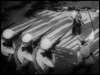 ایزن سٹین نے بارہا گرفتھ کی فلموں اور خاص طور پر ’ان ٹالرنس‘ سے متاثر ہونے کا اعتراف کیا ہے لیکن جس طرح انہوں نے اوڈیسا سٹیپس کا سیکونس بنایا ہے وہ کسی اور کا نہیں خود انہی کا انداز ہے۔ میں نے گرفتھ کی ’ان ٹالرنس‘ نہیں دیکھی لیکن گزشتہ ہفتوں کے دوران میں نے ’بیٹل شپ پوٹمکن‘ کئی بار دیکھی ہے اور یوں محسوس کیا ہے کہ میں ایزنسٹین کی تصویر کے سامنے کھڑا ہوں اور میرے دل سے یہ الفاظ نکل رہے ہیں: ’بیٹل شپ پوٹمکن کے اکیاسی سال بعد بھی تم اتنے ہی عظیم ہو جتنے تھے، ایزن سٹین‘۔ |