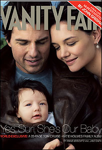 ہالی وڈ کے معروف جوڑے ٹام کروز اور کیٹی ہولمز کی ننھی بیٹی سوری کی تصاویر آخر کار اشاعت کے لیے فراہم کر دی گئیں ہیں۔ فلمی ستاروں کی تصاویر لینے والی فوٹو گرافر اینی لائیبوٹس نے کھینچی ہیں اور انہیں اکتوبر میں بائیس صفحوں پر مشتمل وینٹی فیر نامی رسالے کے خصوصی ایڈیشن میں شائع کیا جائے گا۔ رسالے کے سرِورق پر شائع گئی تصویر میں سوری اپنے والدین کے ساتھ ہے اور ٹام کروز کی جیکٹ سے باہر جھانک رہی ہے۔ اس بچی کی پیدائش اٹھارہ اپریل کو لاس اینجلس میں ہوئی تھی لیکن اس وقت اس کی کوئی تصویر اشاعت کے لیے نہیں دی گئی تھی۔ اس رسالے میں شائع انٹرویو میں کیٹی ہولمز نے ذرائع ابلاغ پر گہری تنقید کرتے ہوئے کہا ہے کہ کسی کو ان کے ٹام کروز کے ساتھ تعلقات کے بارے میں اندازے لگانے کا کوئی حق نہیں ہے۔ اور یہ بھی پوچھنے کا کہ بچی کی تصاویر پہلے اخبارات کو کیوں نہیں دی گئیں۔ انہوں نہ کہا کہ ’ جو باتیں انہوں نے سوری کے بارے میں کیں ہیں، اس طرح کی باتیں ان کو ہمارے بارے میں نہیں کرنی چاہیں کیونکہ اس طرح کی گپ شپ مجھے بہت پریشان کرتی ہے‘۔ کیٹی ہولمز نے کہا کہ ’یہ میرے مستقبل کا سوال ہے اور یہ میرا خاندان ہے اور مجھے اس کی بہت فکر ہے‘۔ انہوں نے کہا کہ’ٹام کروز بہت محبت اور خیال کرنے والے ہیں لیکن باتوں کو موڑ توڑ کر پیش کیا جاتا ہے اور مجھے سمجھ نہیں آتا کہ ایسی باتیں آتی کہاں سے ہیں؟۔ | اسی بارے میں نفسیاتی علاج جعل سازی ہے: کروز28 June, 2005 | فن فنکار ویب’ڈاکو‘ کے خلاف کروز کی فتح25 July, 2006 | فن فنکار اداکار ٹام کروز کی نئی فلمی ڈیل29 August, 2006 | فن فنکار | ||||||||||||||||||||||||||||||||||||||||