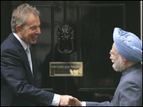 برطانوی وزیر اعظم ٹونی بلیئر اور ان کے ہندستانی ہم منصب منموہن سنگھ نے عالمی دہشتگردی کے خلاف تعاون کا عہد کیا ہے۔ منموہن سنگھ یورپ کے چھ روزہ دورے پر سب سے پہلے لندن پہنچے ہیں۔ دونوں رہنماؤں نے ملاقات کے بعد کہا ہے کہ وہ مل کر عالمی دہشتگردی کے خلاف لڑیں گے اور اقتصادی، سائنسی اور تعلیمی شعبوں میں روابط بڑھائیں گے۔ ممبئی میں ٹرین بم دھماکوں میں 200 سے زائد افراد ہلاک ہوئے جبکہ ایک ہی سال قبل لندن بم دھماکوں میں 52 افراد ہلاک ہوئے تھے۔ ٹونی بلیئر نے کہا کہ دونوں ممالک کو دہشتگردی کے واقعات کا تجربہ ہے اور اب یہ زیادہ اہم ہے کہ دونوں ممالک اس معاملے پر مل کر کام کریں۔ منموہن سنگھ نے ان خیالات کا خیر مقدم کیا اور کہا کہ دونوں ممالک کو مشترکہ خطرات کا سامنا ہے۔ بلیئر نے گزشتہ ستمبر میں انڈیا کا دورہ کیا تھا۔ دونوں رہنماؤں نے شمالی کوریا کے حالیہ ایٹمی تجربات کی مذمت کی۔ حکام کا کہنا ہےکہ وزراء اعظم نے کھیلوں کے مقامات محفوظ بنانے اور شدت پسندی سے نمٹنے پر بھی بات چیت کی ہے۔ ٹونی بلیئر نے برطانیہ انڈیا تعلقات پر خوشی کا اظہار کیا اور کہا کہ نصف ملین ہندوستانی ہر سال برطانیہ کا دورہ کرتے ہیں اور برطانیہ انڈیا میں سرمایہ کاری کرنے والا تیسرا بڑا ملک ہے۔ لندن میں اہم شخصیات سے ملاقات کے بعد منموہن سنگھ یورپی رہنماؤں سے دو روزہ ملاقات کے کیئے فن لینڈ جائںں گے۔ انڈین حکام کا کہنا ہے کہ فن لینڈ دورے پر روانگی سے قبل منموہن سنگھ شہری مقاصد کے لیئے جوہری ایندھن کی تلاش پر بھی بات کریں گے۔ | اسی بارے میں ممبئی دھماکے، مزید دو افراد گرفتار 25 July, 2006 | انڈیا ممبئی دھماکوں کے بعد پہلا رابطہ31 July, 2006 | انڈیا حفاظت کا مسئلہ، انڈیا بھی دوڑ میں شامل14 September, 2006 | انڈیا امن مذاکرات معطل کریں: بی جے پی01 October, 2006 | انڈیا پاکستان کو ثبوت دینگے: منموہن 04 October, 2006 | انڈیا 93 دھماکے، مزید تین مجرم06 October, 2006 | انڈیا | ||||||||||||||||||||||||||||||||||||||||