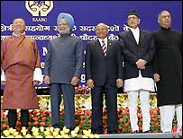 شوکت عزیز نے کہا کہ مقاصد کے حصول کے لیے ہمیں اپنی سوچ اور سلوک میں زبردست تبدیلی کی ضرورت ہے۔ انہوں نے سارک تنظیم میں افغانستان کی شمولیت پر افغان کے صدر حامد کرزئی کو مبارک باد دی اور کہا انہیں امید ہے کہ افغانستان اس تنظیم میں اہم رول ادا کرے گا۔ افغانستان اس تنظیم میں شامل ہونے والا آٹھواں ملک ہے، منگل کو باضابطہ طور پر تنظیم میں اسے شامل کرنے کا اعلان کیا گیا ہے۔ بھارت کے وزیر اعظم من موہن سنگھ نے کہا : ’میں تجویز پیش کرتا ہوں کہ ہم اپنی دارالحکومتوں کو براہ راست فضائی سروسز سے مربوط کرلیں‘۔ اس موقع پر انہوں نے پڑوسی ممالک کو بھارتی بازار میں ڈیوٹی فری رسائی حاصل کرنے کا بھی موقع فراہم کرنے کا اعلان کیا۔ افغانستان کے صدر حامد کرزئی نے اپنے خطاب میں افغانستان کی تنظیم میں شمولیت پر رکن ممالک کا شکریہ ادا کیا اور کہا اس سے ان کے ملک کی اقتصادی و سیاسی علیحدگی ختم ہوجائےگی اور اس کی ترقی کی رفتار مزید تیز ہوگی۔ حامد کرزئی کا کہنا تھاکہ’ ہم ترقی اسی وقت حاصل کر سکتے ہیں جب شدت پسندی پر قابو پایا جا سکے۔ اس کے بغیر ترقی کو بر قرار رکھنا مشکل ہوگا۔‘ بنگلہ دیش، سری لنکا مالدیپ، بھوٹان اور نیپال کے سربراہان نے بھی کانفرنس سے خطاب کیا اور سب ہی نے اس بات پر زور دیا کہ خطے میں امن و خوشحالی کی بحالی کے لیے دہشت گردی سے نمٹنا ضروری ہے۔ |