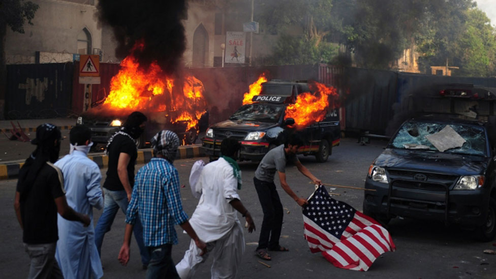 • پشاور میں گستاخانہ فلم کے خلاف احتجاج کے موقع پر مظاہرین نے دو سنیما گھروں کو آگ لگا دی جبکہ بڑے پیمانے پر توڑ پھوڑ بھی کی گئی۔